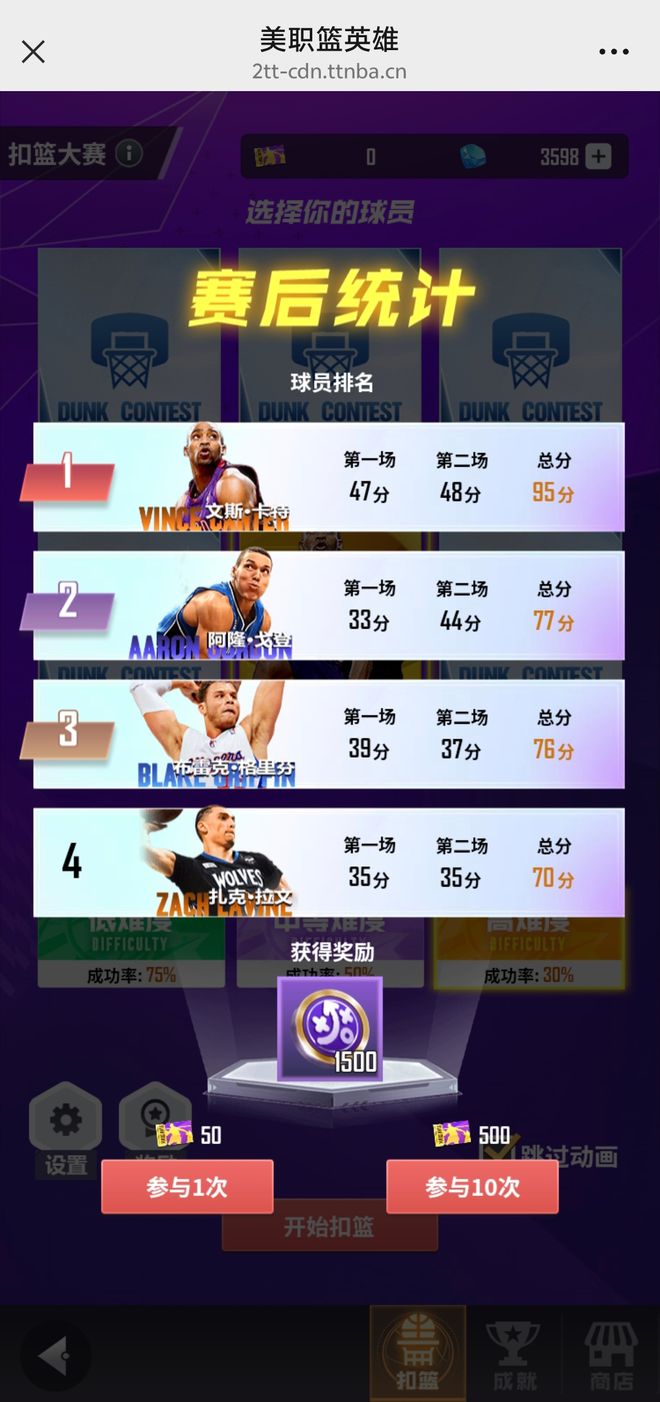 扫码进入游戏-活动-即可参与扣篮大赛赢巅峰教练
