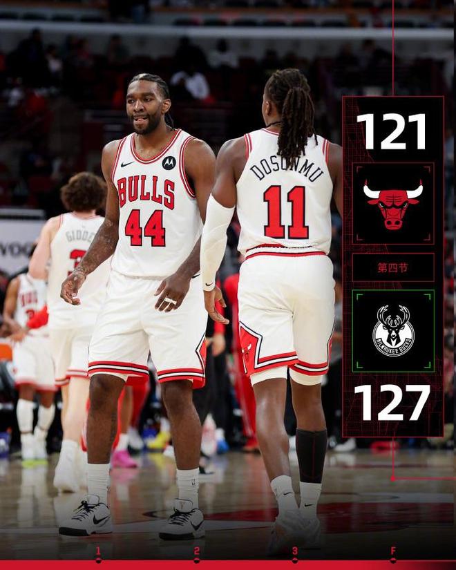 北京时间10月13日,NBA季前赛继续展开,雄鹿客场挑战公牛。本场比赛字母哥迎来复出,上来雄鹿占据一些主动,之后两队陷入拉锯战,分差一直没有拉开,三节打完雄鹿领先9分,末节两队都是替补球员出战,公牛一度连续命中3记三分反超比分,可在之后雄鹿连续拿分重新取得领先。最终,雄鹿127-121击败公牛,取得3连胜。